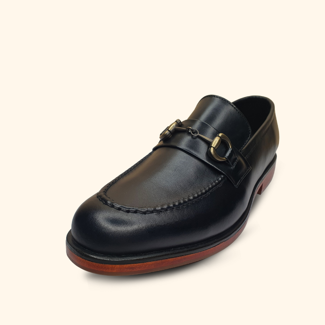 Genuine hand-stitched moc construction Soft leather-cushioned footbed