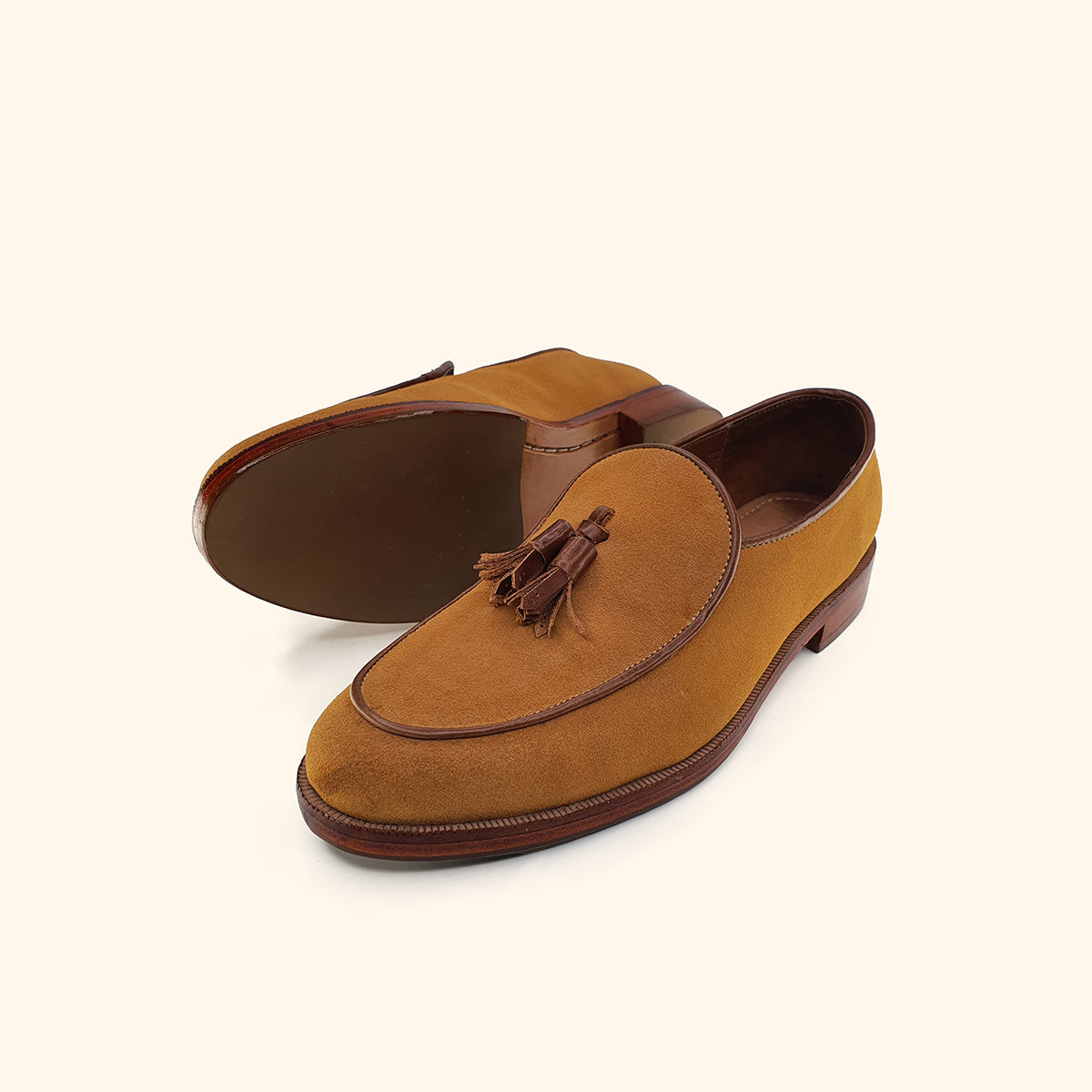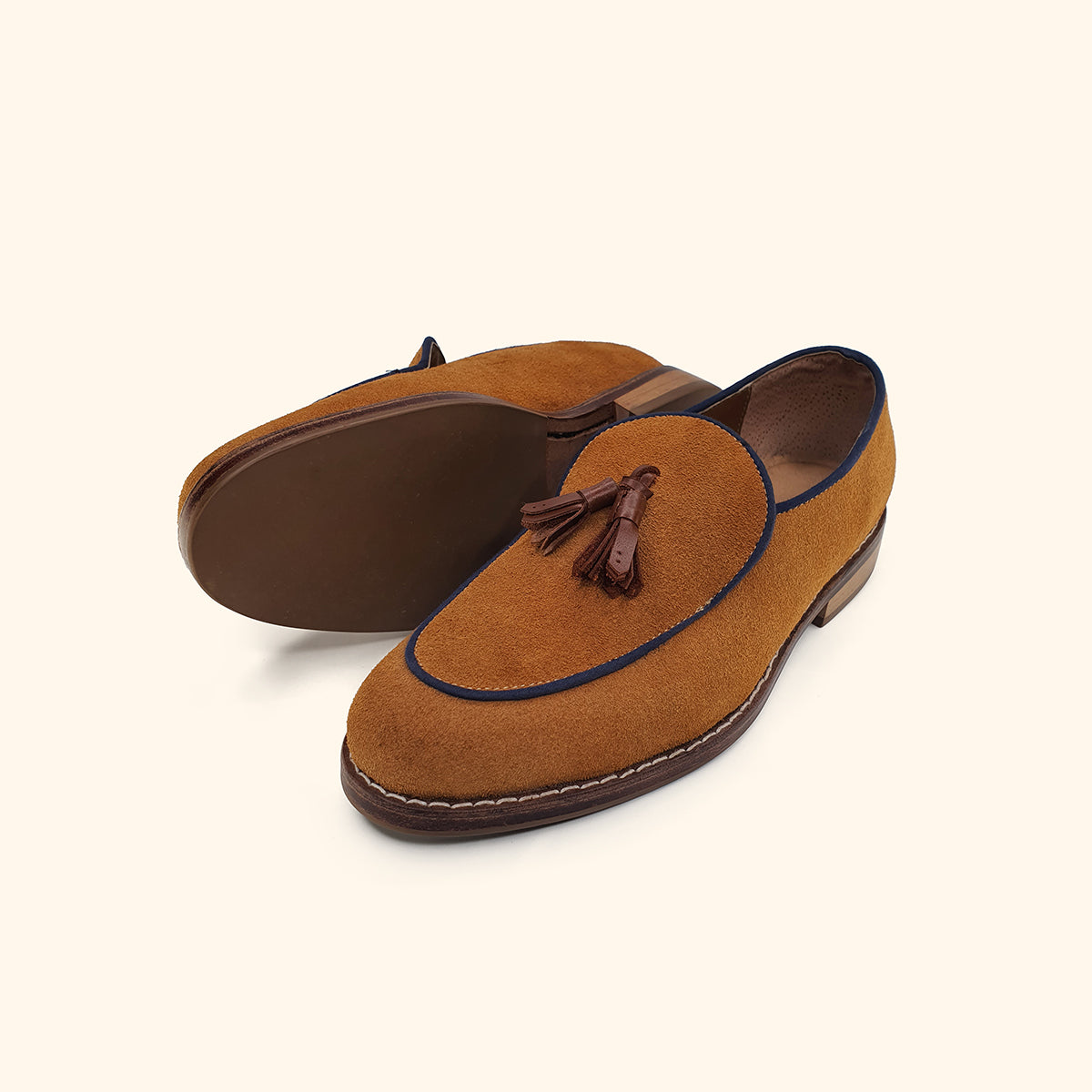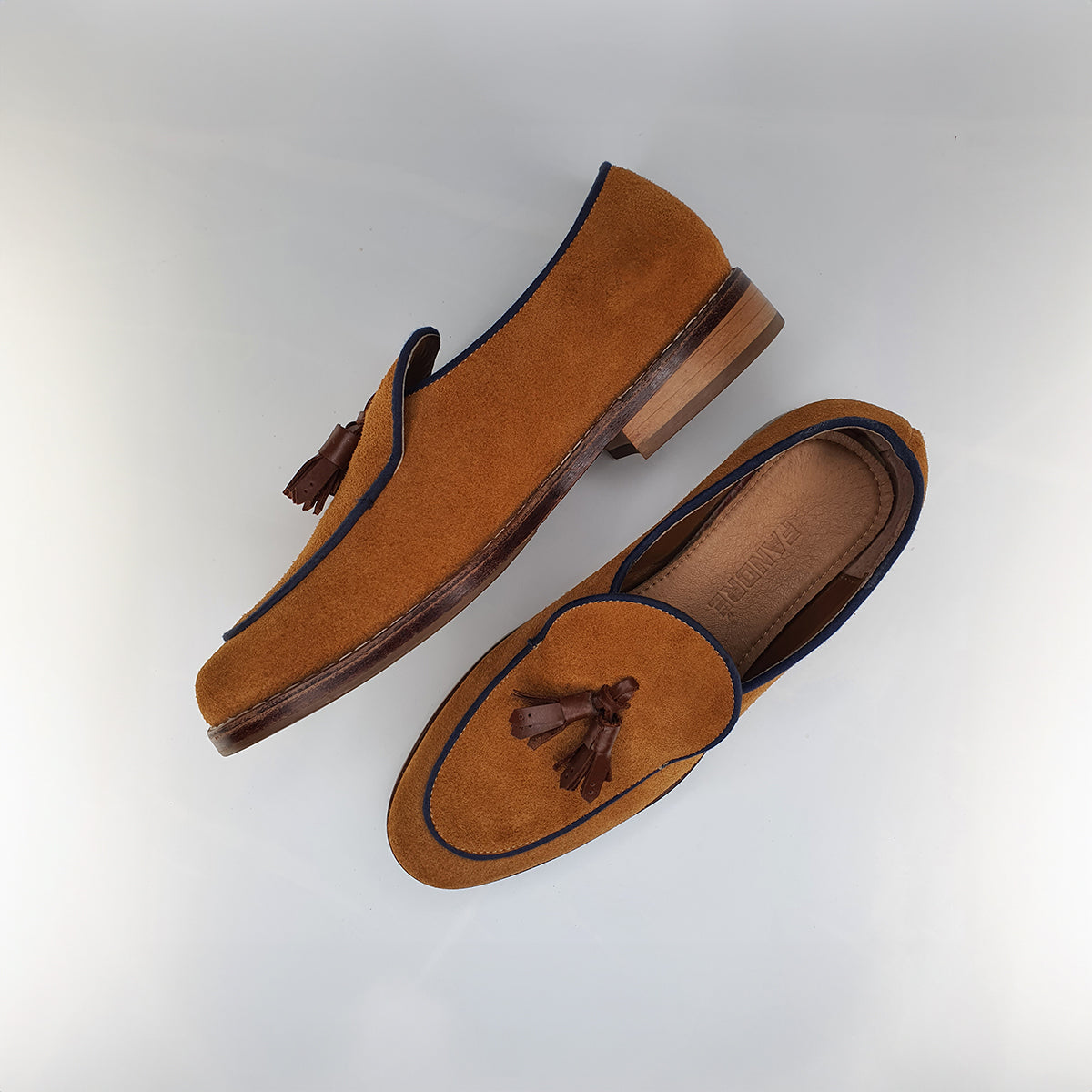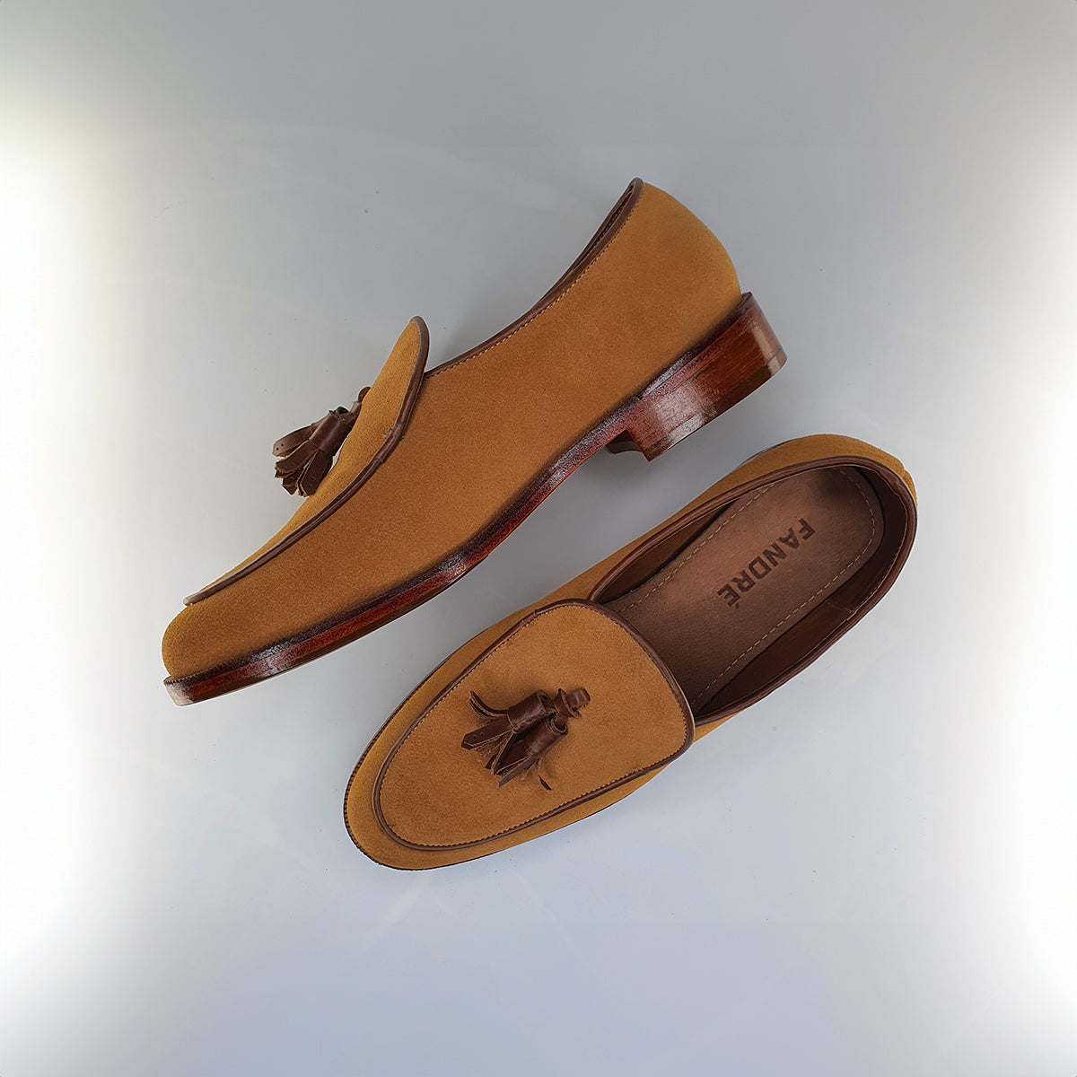 High quality suede genuine leather tassel loafers with customized leather sole for men.