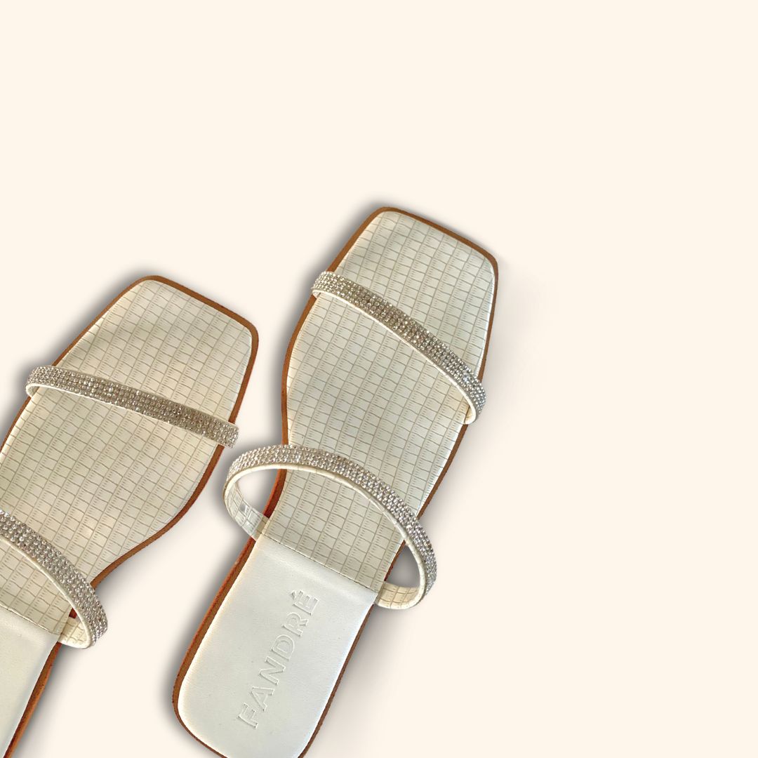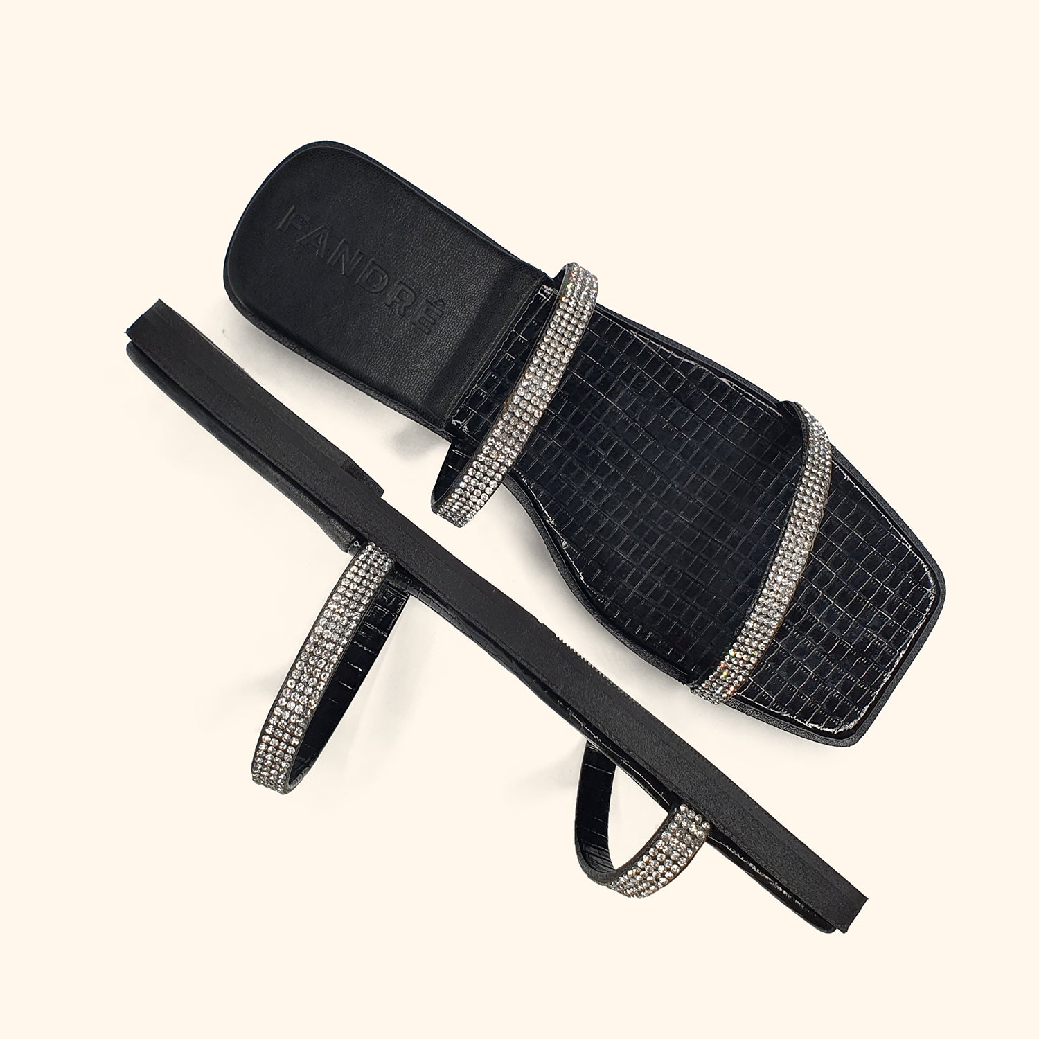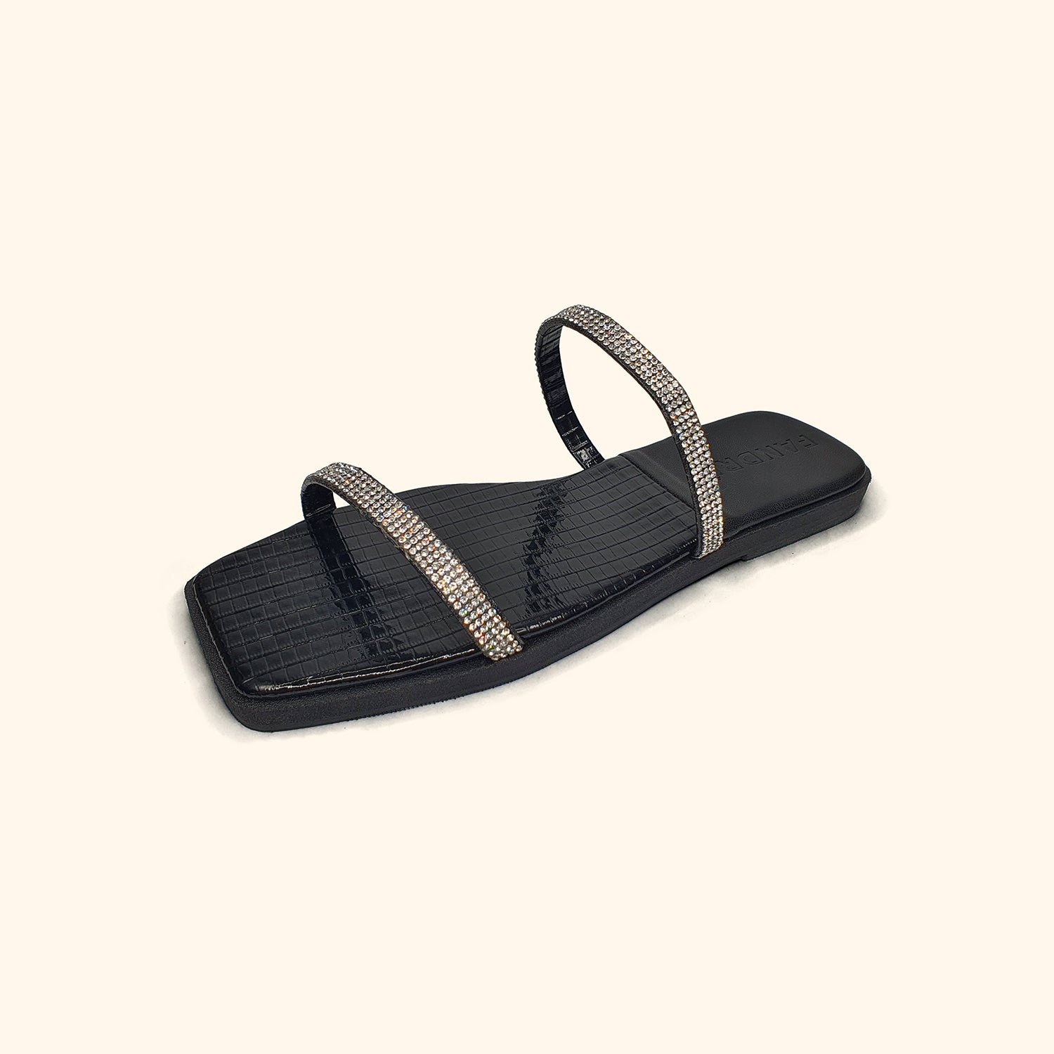 Premium leather quality flat sandals with shining straps and front croc footbed for women.